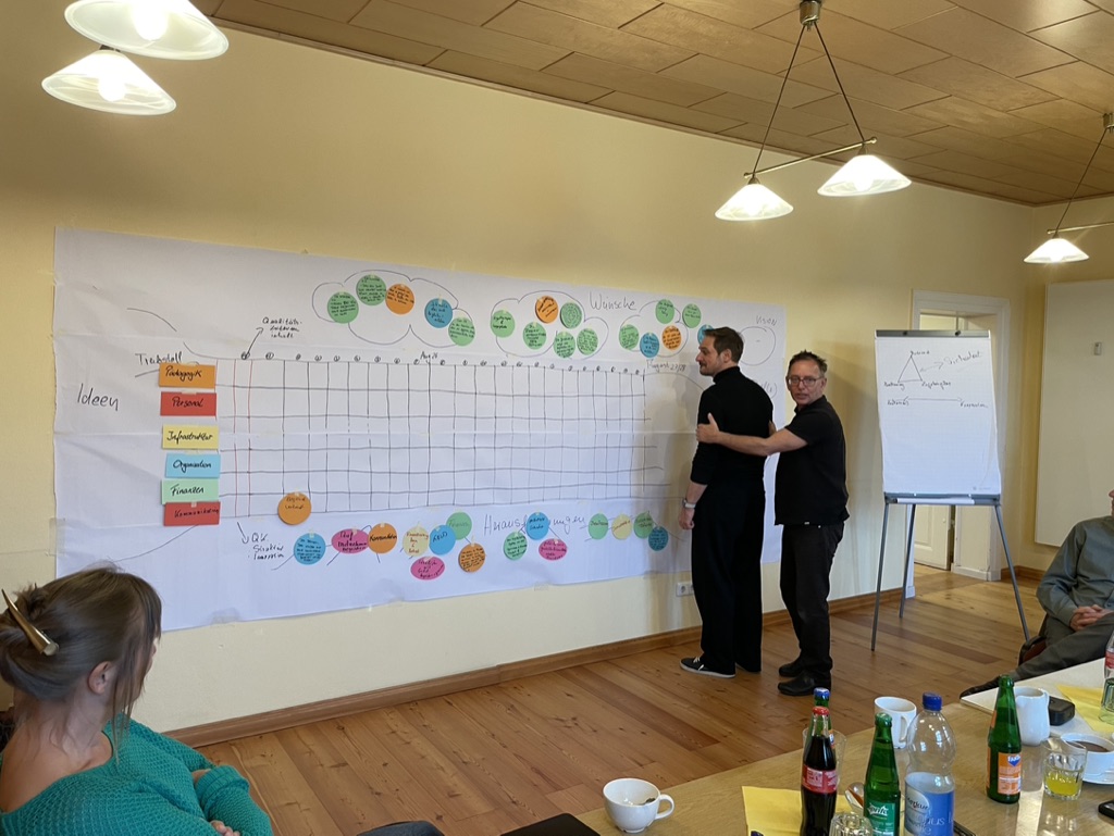 In einer ausführlichen Phase beleuchteten wir dann die Aspekte Pädagogisches Konzept, Personal, Infrastruktur, Organisation, Finanzen und Kommunikation.